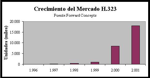 Varias compañías consultoras independientes predicen una rápida adopción del H.323. El gráfico siguiente explica por sí mismo esta tendencia.
