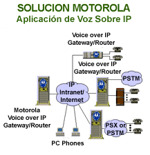Motorola líder en el mercado de equipos de Acceso de Frame Relay, anunció su estrategia de voz sobre IP para 1998, que consiste en ofrecer la existente plataforma de Hardware de sus FRAD’s (Gabinetes, Interfaces y Puertos) para esta aplicación, los cuales son :